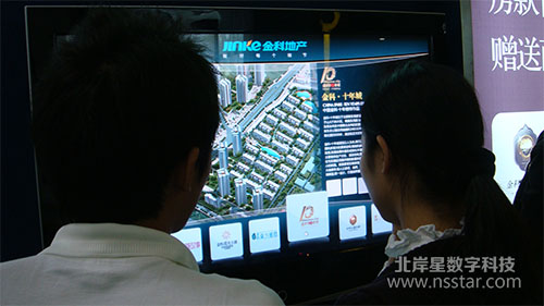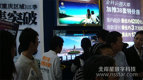 金科集团2008秋季房交会触摸屏展示软件 北岸星数字科技 发布于 2008/10/8 10:05:06 点击 10107 金科展厅共安装两台42寸液晶电视显示多媒体软件,互动和查询软件的顾客络绎不绝,给楼盘带来很好的民法效果。 多媒体内容包括:金科集团介绍、金科旗下7个楼盘的项目分别介绍、置业计算器等。(本案例版权全部属于重庆北岸星科技(www.nsstar.com)所有,任何单位、个人、网站不得私自转载及使用,一经发现,交由网监部门处理!)
