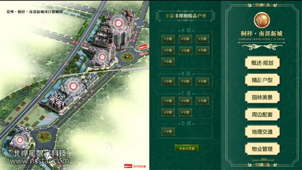 贵州省桐梓县南部新城售楼部沙盘多媒体系统 北岸星数字科技 发布于 2009/11/20 13:03:02 点击 11145 本系统可以稳定的控制沙盘上每一栋楼、每一层楼、每一个房间的灯光,与多媒体展示软件同步。多媒体软件内含详细的楼盘详情介绍。 (本案例版权全部属于重庆北岸星科技(www.nsstar.com)所有,任何单位、个人、网站不得私自转载及使用,一经发现,交由网监部门处理!)