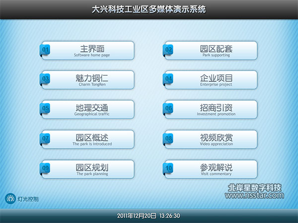 本多媒体软件应用于贵州省铜仁市大兴科技工业园规划展厅,使用苹果ipad平板电脑+触摸屏一体机+LED大屏幕同步+kinect控制的方式,可以控制沙盘上各个规划片区、功能分区、交通、建筑等的灯光;并且在触摸屏上可以方便的查询地理交通介绍、工业园介绍、工业园规划、经济发展、招商引资政策流程、语音解说、宣传视频等全面详细的资料。